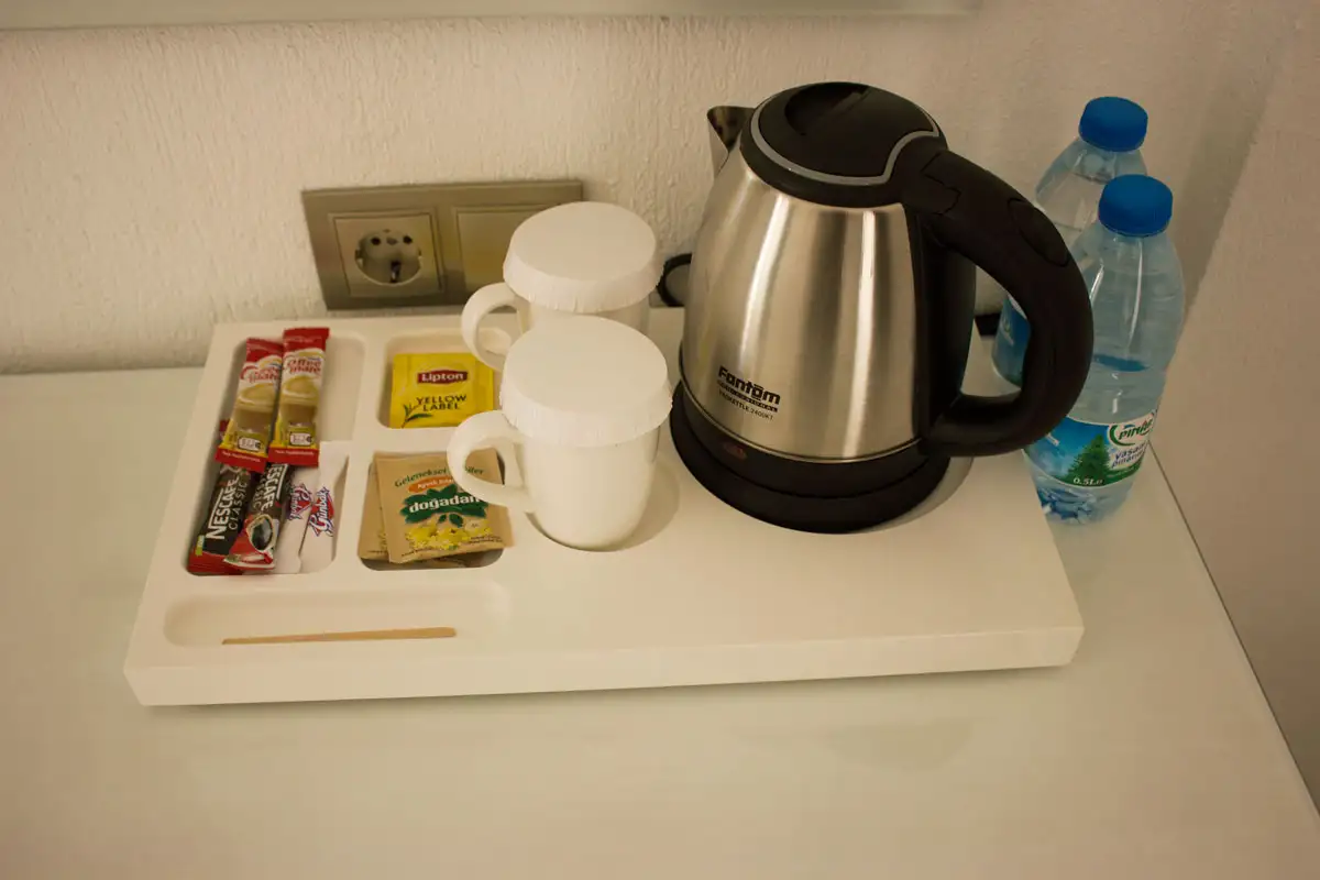 Economy Rooms: Located in the basement, the corridor gives the feeling of an aquarium through the two glass windows overlooking the pool. Therefore, our rooms are very spacious. There is no mobile phone reception in the basement, but internet access is available. The rooms are equipped with air conditioning, a hairdryer, a kettle, satellite TV, LCD TV, minibar, 24-hour hot water, Wi-Fi internet, 2 small bottles of water, and 3 hot beverages.